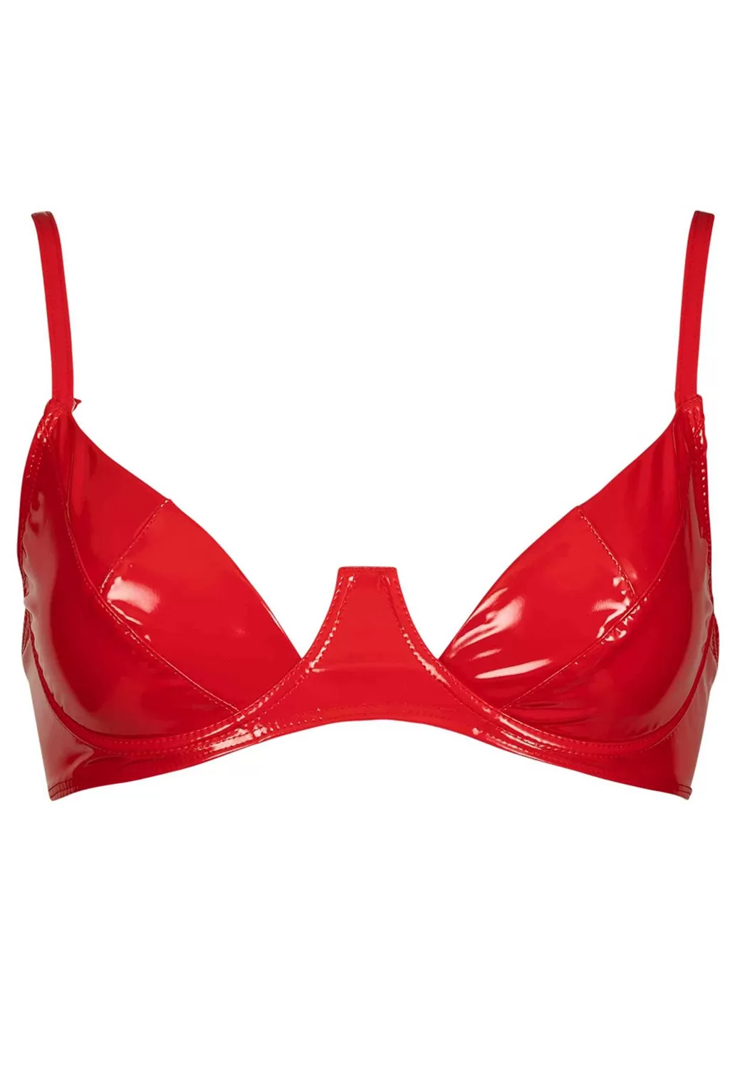 S red vinyl bra belongs to Tome 15 by Patrice Catanzaro. Fabric : Vinyl. Composition : 80% Polyester, 12% Polyurethane, 8% Elastane. 1 piece. Made in France.