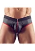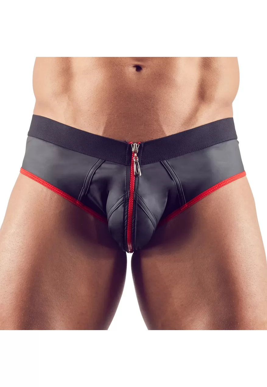 What a sexy sight and a comfortable fit! Exciting jock made out of shiny matte material in an arousing neoprene or rubber look, contrasting red trim. The zip at the front invites someone to get very hands-on. Composition 90% polyester, 10% spandex, polyurethane coating. 1 piece