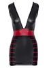 Short, tight-fitting dress from Cottelli PARTY made out of black matte look material. There is a red stripe around the waist and red stripes at either side of the skirt part which emphasises sexy curves. The sexy sleeveless dress has a very low-cut neckline. Soft and stretchy for a comfortable fit. 90% polyester, 10% spandex. 1 piece