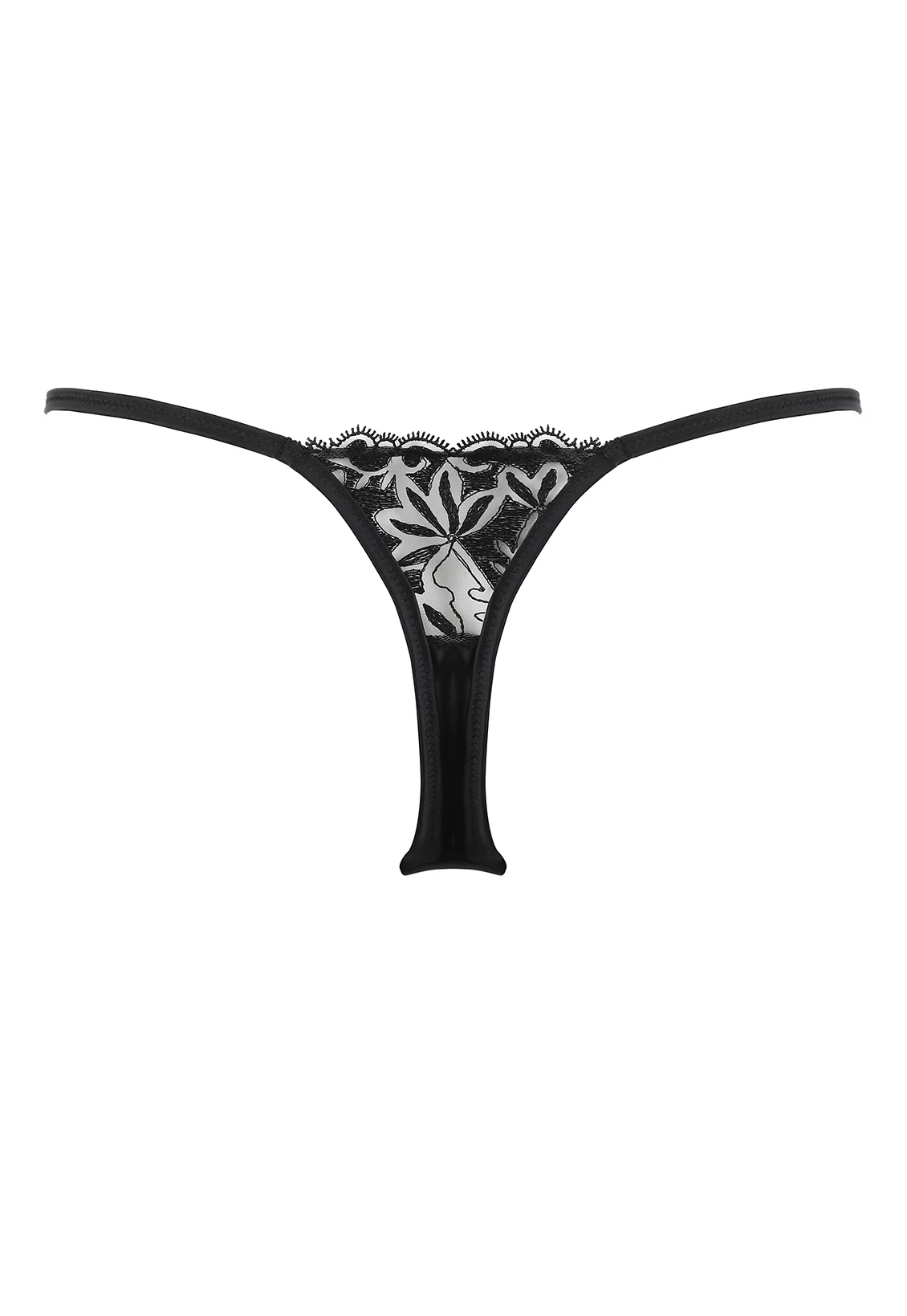 This TANGO black thong is designed in noble materials: a satin fabric and sensual transparent embroidery.