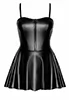 This mini dress is designed in a stretchy Powerwetlook fabric that wraps the body with a corset and flared skirt cut, ensuring a silhouette that is both impressive and graceful.