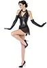 Le robe Aline est dans un style Marilyn Monroe, avec un effet bustier. La partie jupe et poitrine de la robe sexy Aline sont faites en résille noire transparente. La poitrine est mise en valeur par des plis sur le bonnet résille. La robe fetish Aline comprend aussi un serre taille affinant la silhouette qui est fait en cuir simili texturé, très semblable au cuir naturel et il a une fermeture éclair invisible sur le côté gauche pour faciliter son enfilage.