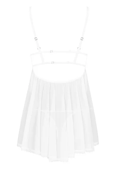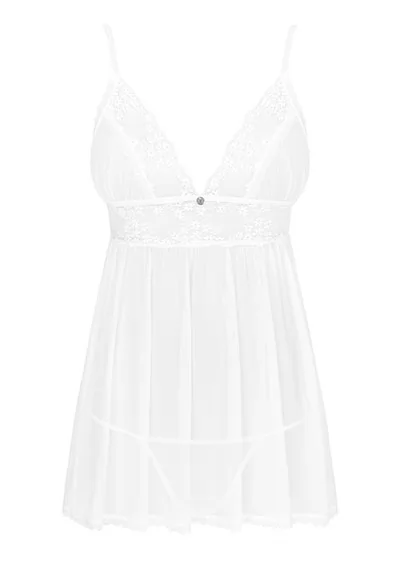 Nuisette blanche Heavenlly de forme évasée sur le bas, caractéristique d'une babydoll, avec un décolleté triangle. Le tissu de cette nuisette épousera votre corps avec douceur et sensualité, et la dentelle florale ajoutera le petit coup de pouce sexy pour accentuer votre buste.