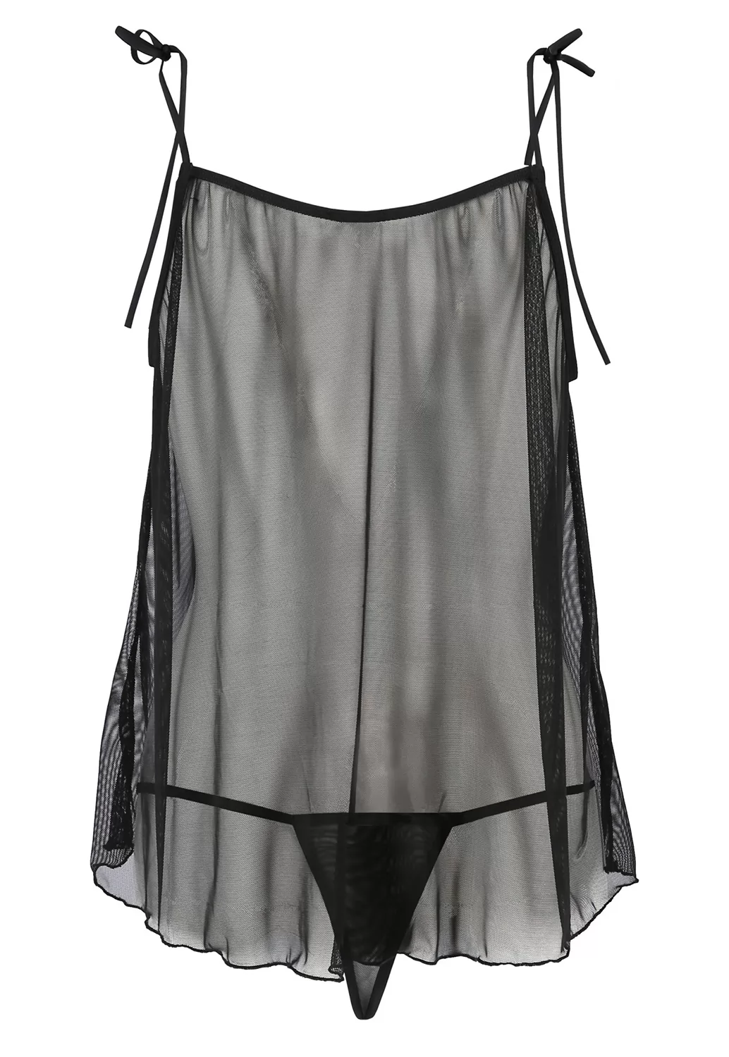 Jouant sur la légèreté et la transparence, cette nuisette évasée promet des nuits aussi douces que torrides. La nuisette Melania est orné d'une délicate dentelle au dessus de la poitrine, tandis que le bas de la babydoll est transparent. Ses bretelles à nouer permettent un ajustement parfait. Nuisette livrée avec son string coordonné. 2 pièces. Composition : 75% polyester, 15% polyamide, 10% élasthanne