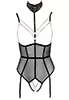 L'arrière du body est dans un look 2 pièces. Il y a deux attaches à clip sur le soutien-gorge et une culotte porte-jarretelles. 90% polyamide, 10% élasthanne. Bas vendus séparément dans la boutique A Mes Amours. 1 pièce
