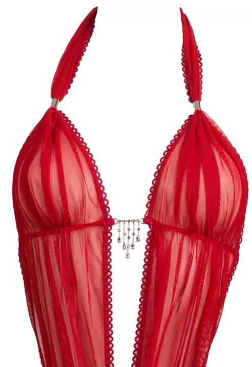 Body voile Love rouge, gamme lingerie fine sexy luxe.