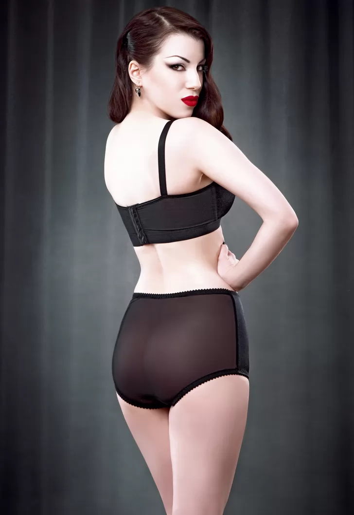 Culotte transparente au dos, style rétro Van Doren de coloris noir, en matière élastique avec effet gainant +.