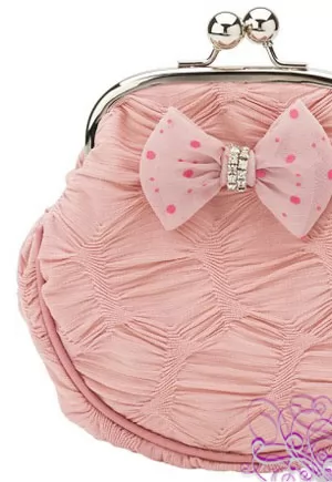 Jolie trousse de toilette rose avec noeud décoratif et strass.