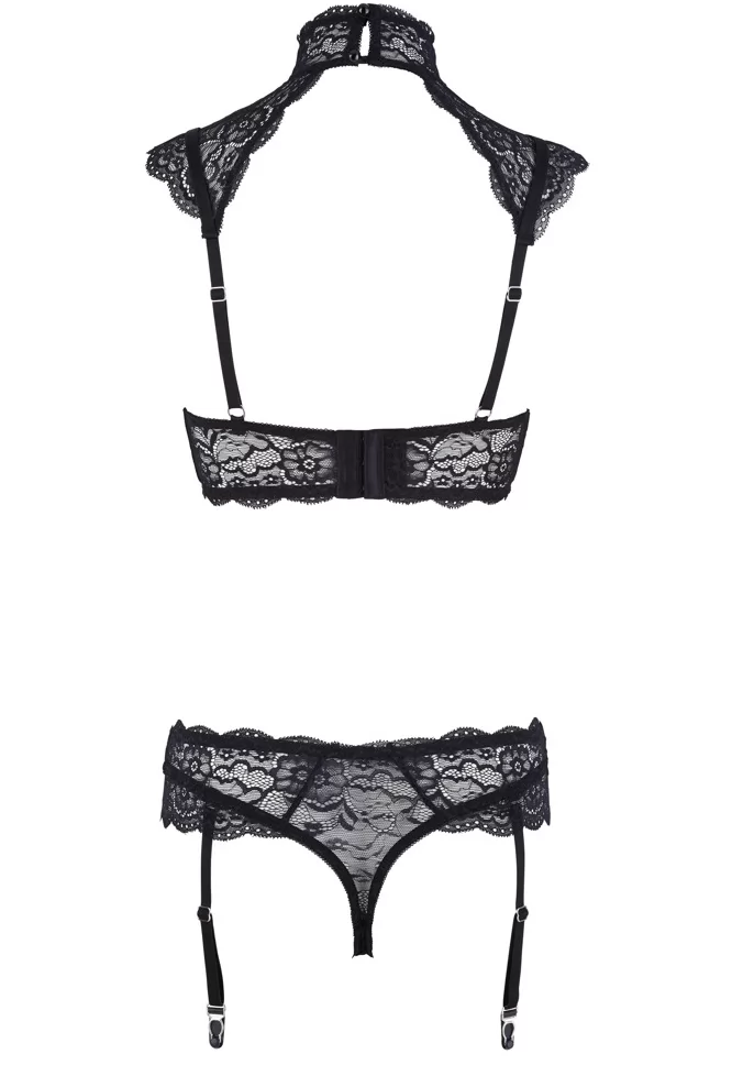 Lingerie dentelle jarretelles 3 pcs Noir 838Obsessive