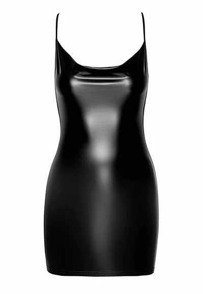 Cette robe est confectionnée dans un tissu extensible de type powerwetlook, conçu pour dessiner les contours de la silhouette et la flatter.