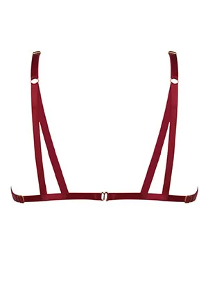 Soutien gorge ouvert Frame Bondage Rouge en élastique satiné et éléments Plaqués Or 24 K, réglable en taille pour épouser parfaitement votre corps 1 pièce.